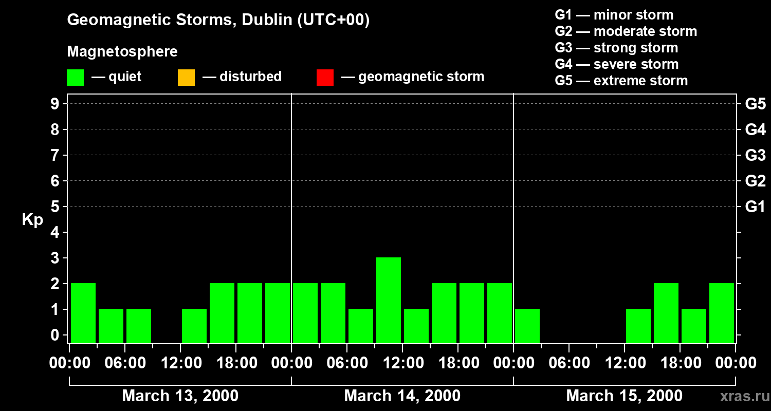 Geomagnetic storms in Dublin on Mar 15, 2000