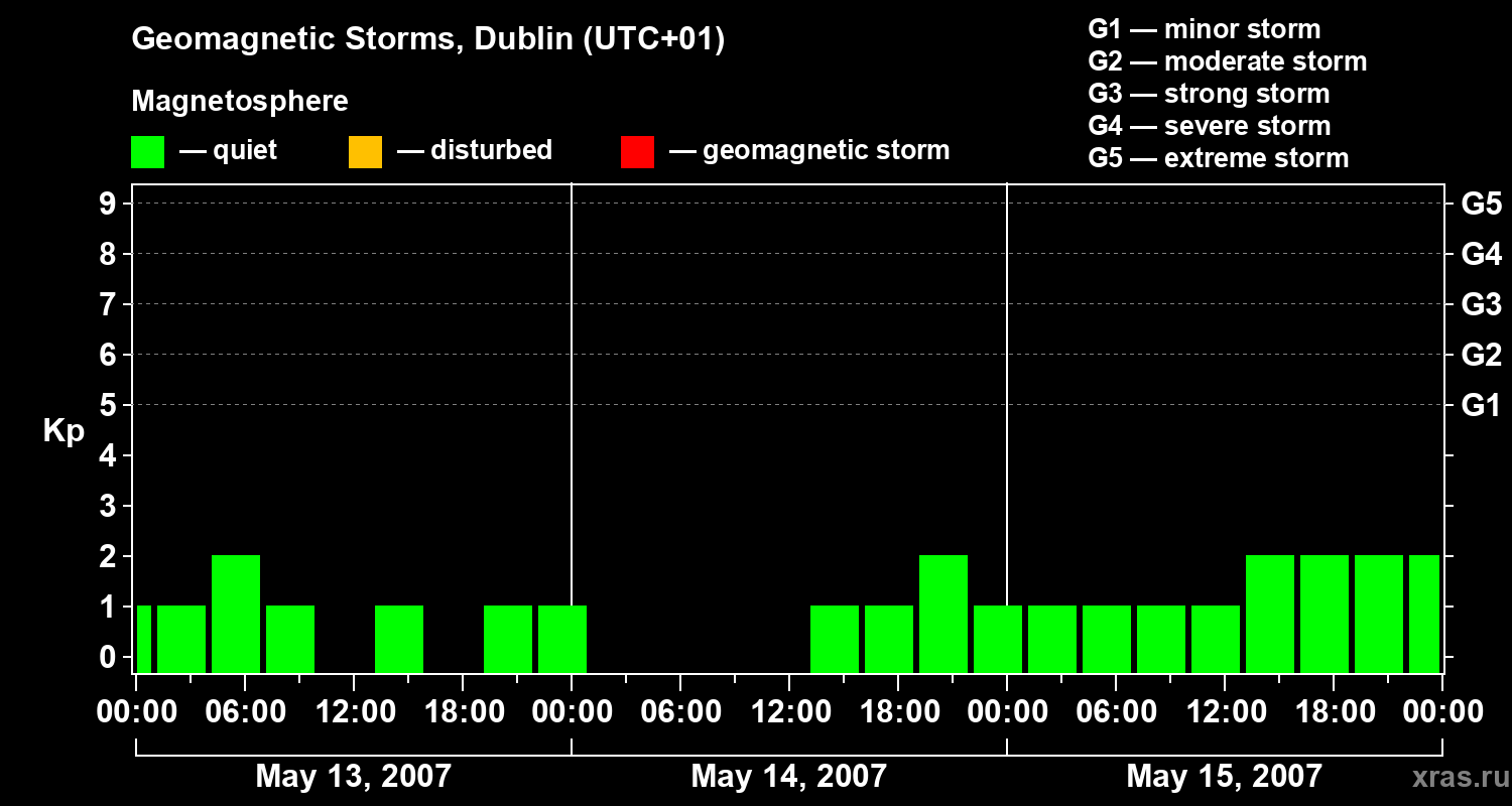 Geomagnetic storms in Dublin on May 15, 2007
