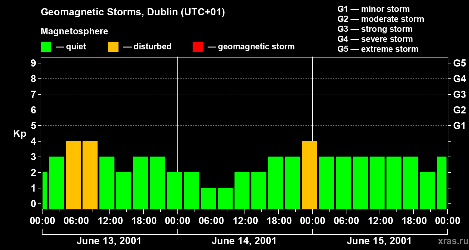 Geomagnetic storms in Dublin on Jun 15, 2001