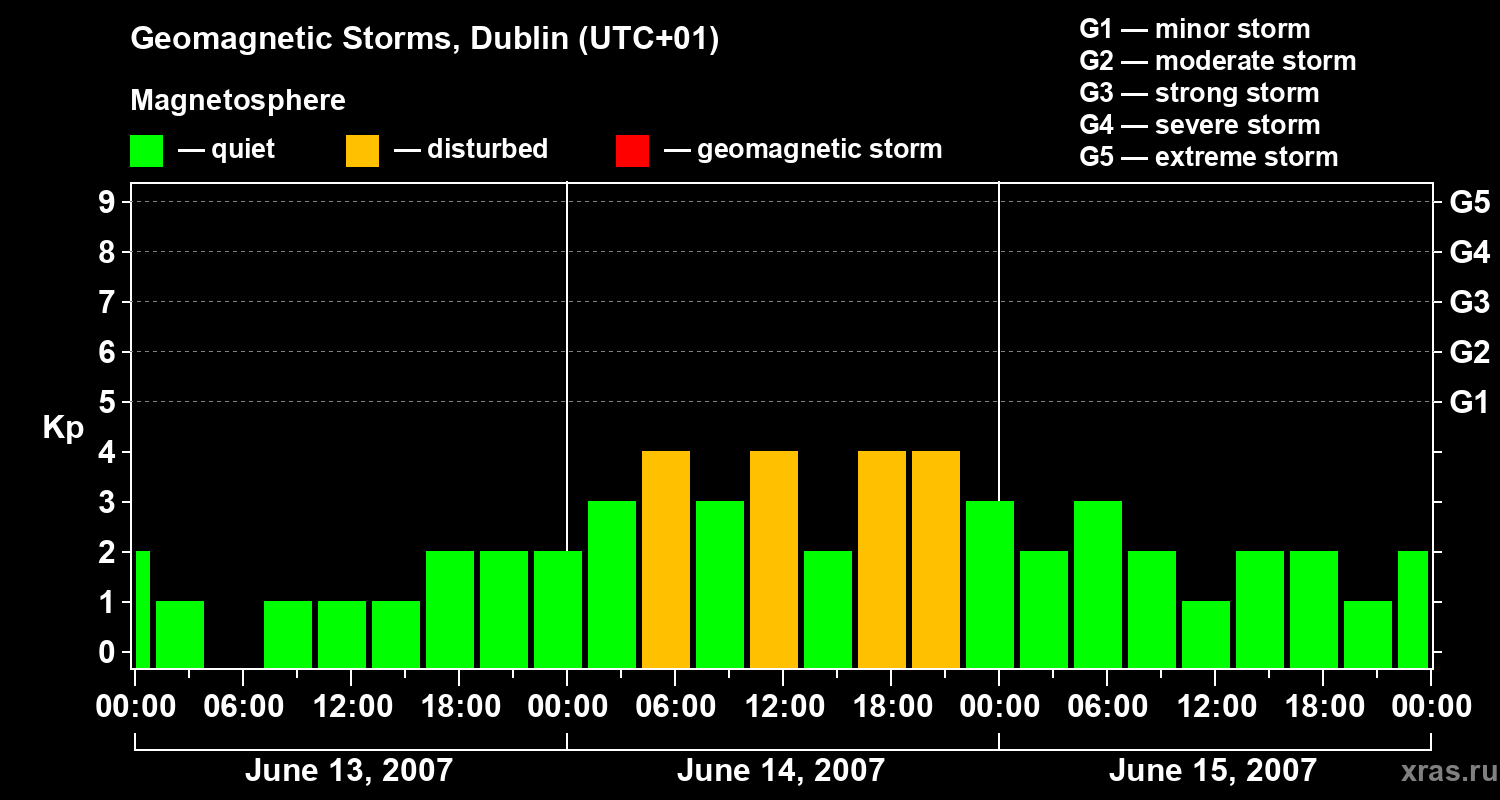 Geomagnetic storms in Dublin on Jun 15, 2007