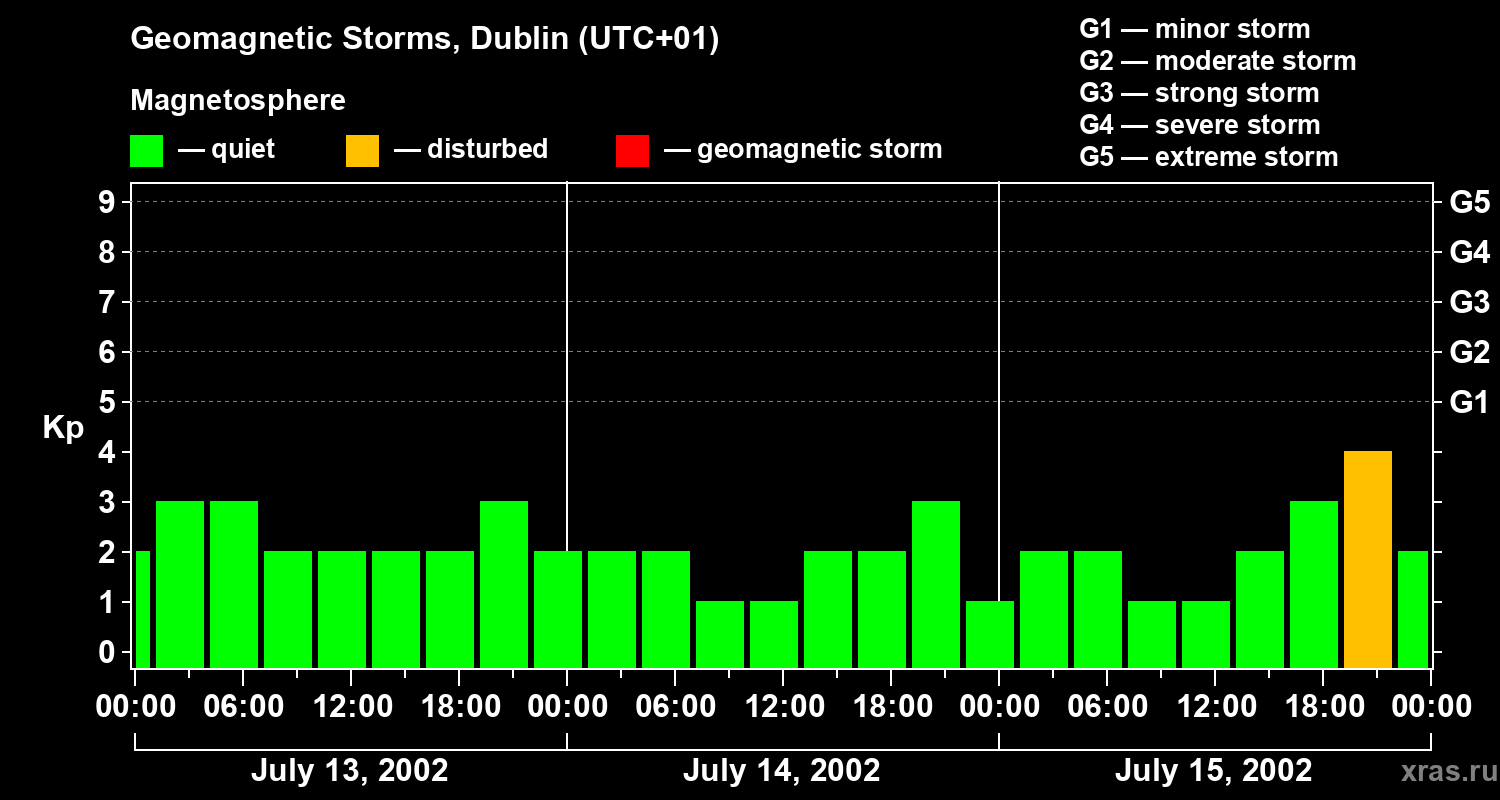 Geomagnetic storms in Dublin on Jul 15, 2002