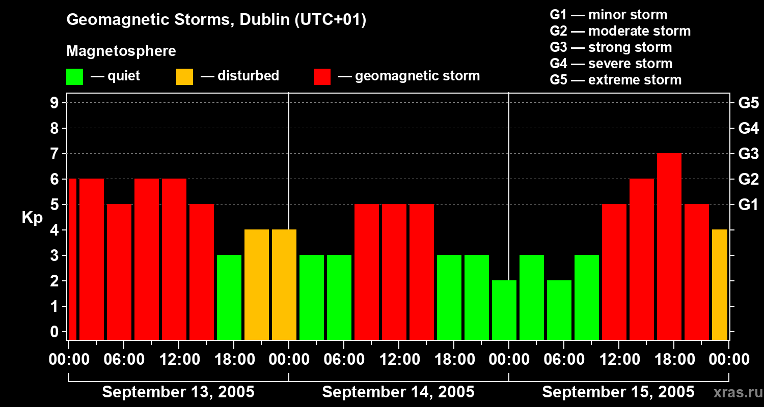 Geomagnetic storms in Dublin on Sep 15, 2005