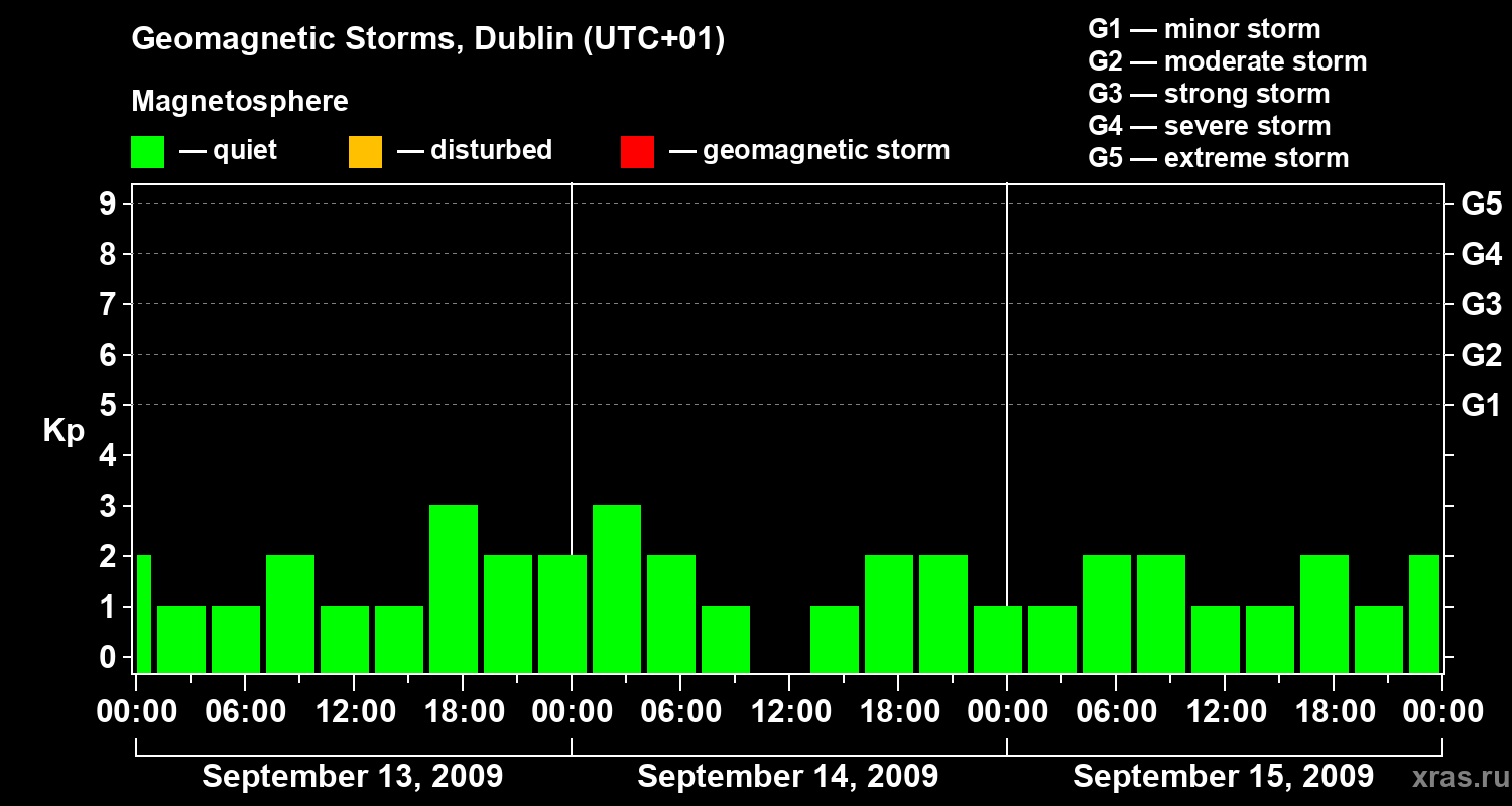 Geomagnetic storms in Dublin on Sep 15, 2009
