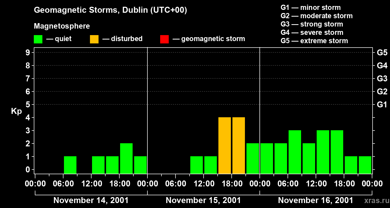 Geomagnetic storms in Dublin on Nov 16, 2001