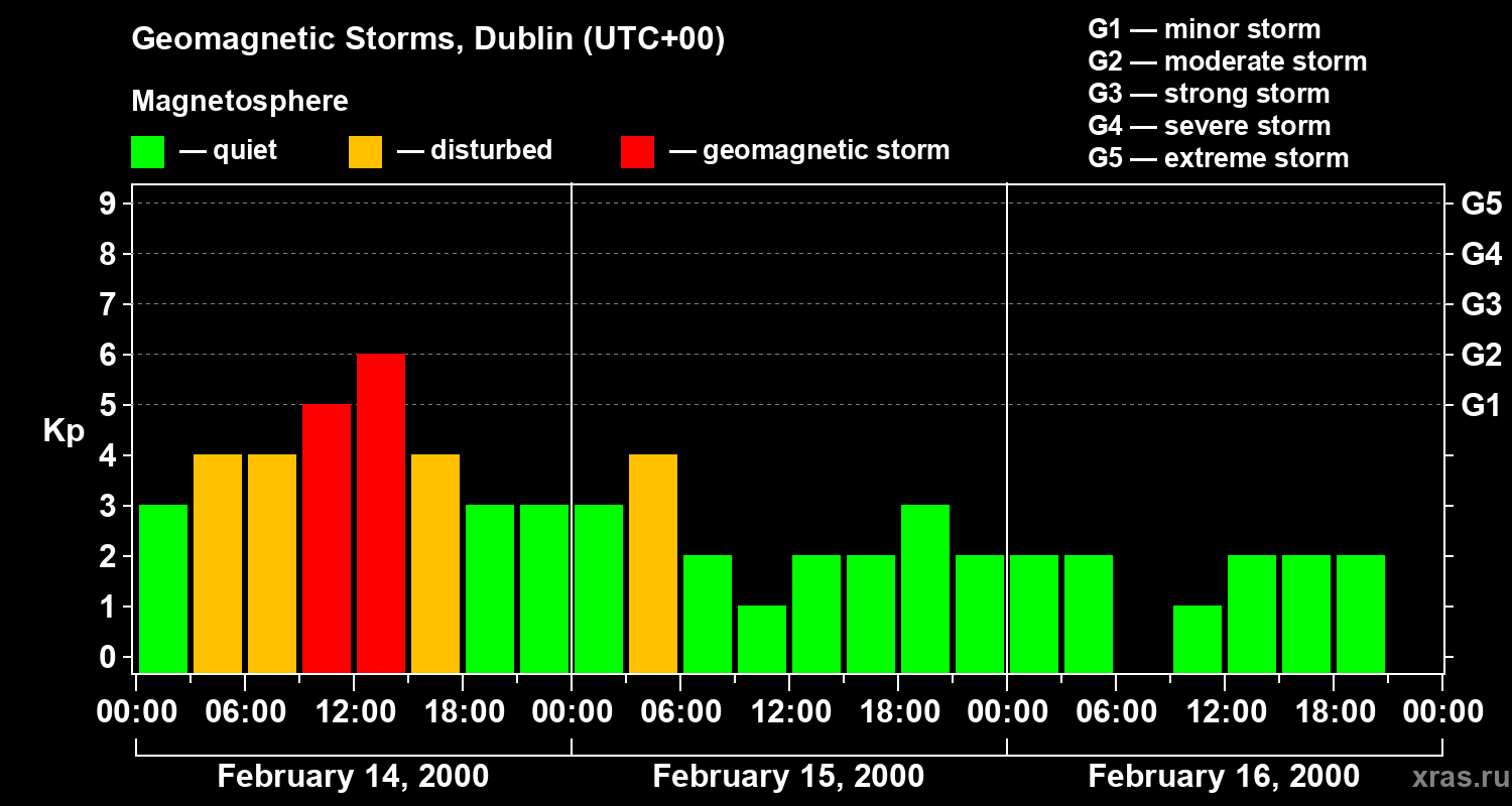 Geomagnetic storms in Dublin on Feb 16, 2000