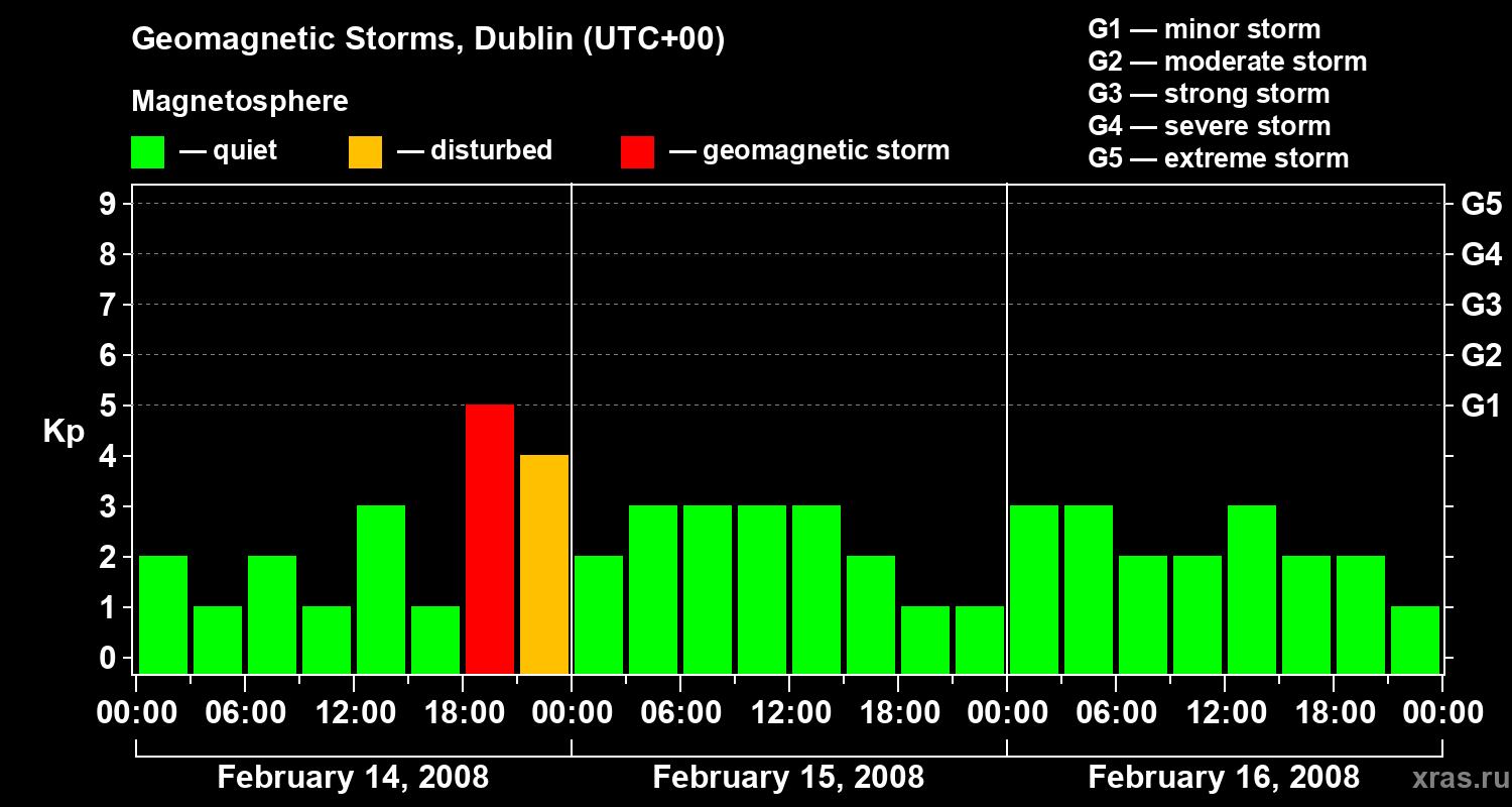 Geomagnetic storms in Dublin on Feb 16, 2008