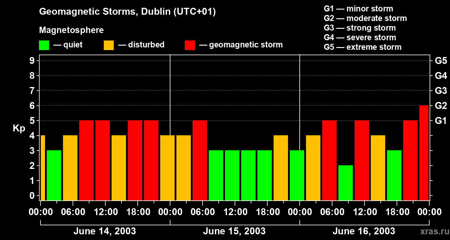 Geomagnetic storms in Dublin on Jun 16, 2003