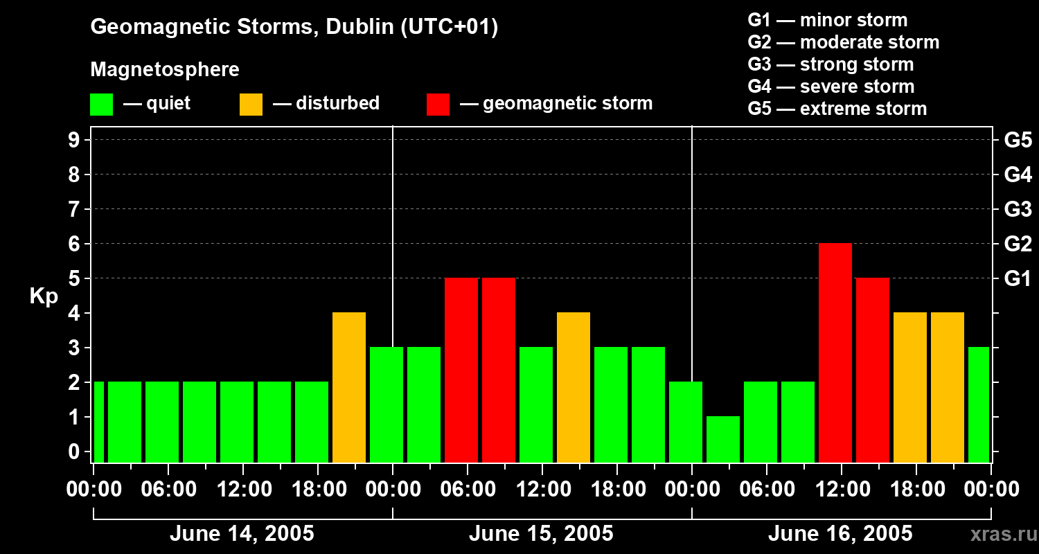 Geomagnetic storms in Dublin on Jun 16, 2005