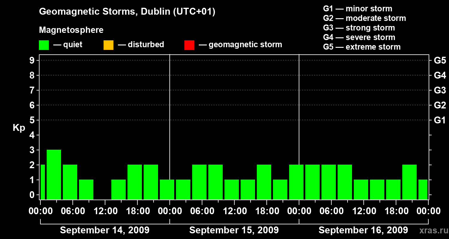 Geomagnetic storms in Dublin on Sep 16, 2009