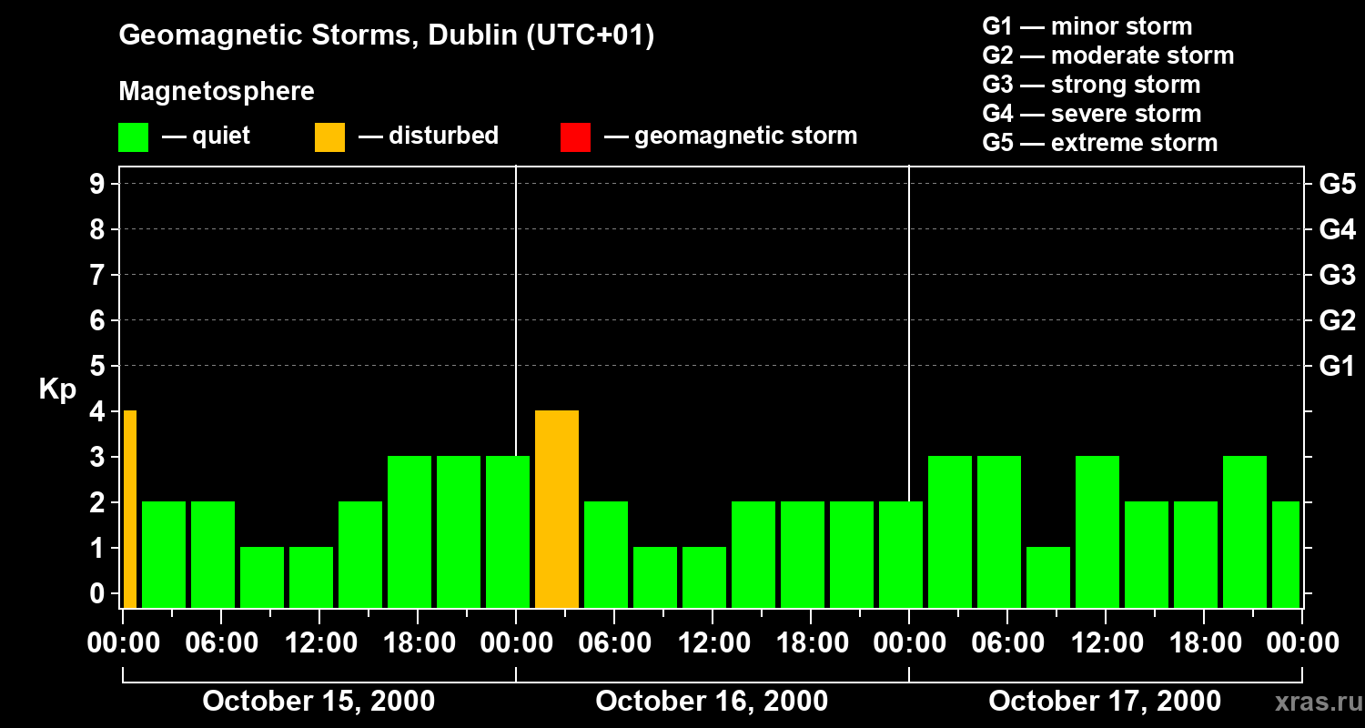 Geomagnetic storms in Dublin on Oct 17, 2000