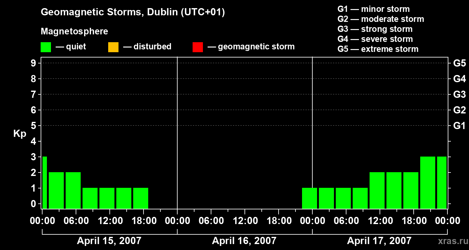 Geomagnetic storms in Dublin on Apr 17, 2007