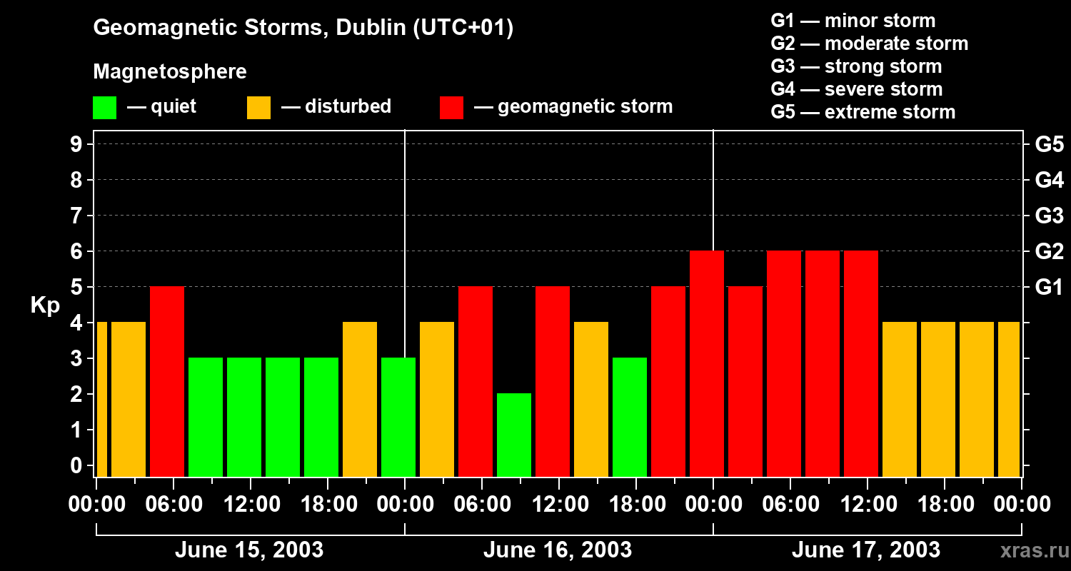 Geomagnetic storms in Dublin on Jun 17, 2003