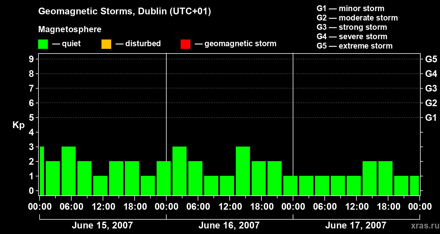 Geomagnetic storms in Dublin on Jun 17, 2007