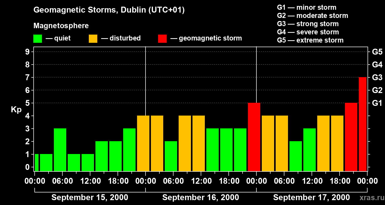 Geomagnetic storms in Dublin on Sep 17, 2000