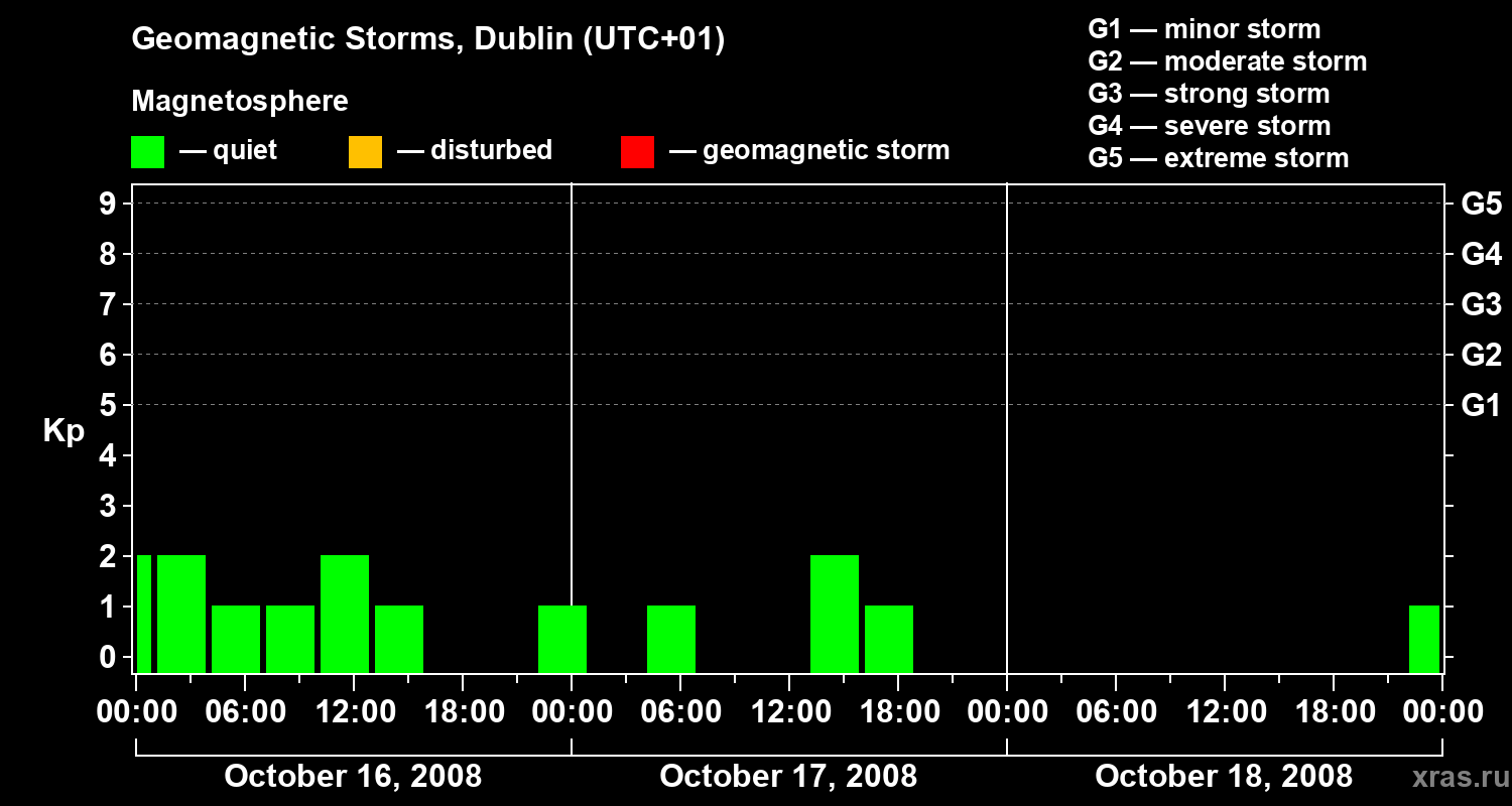 Geomagnetic storms in Dublin on Oct 18, 2008
