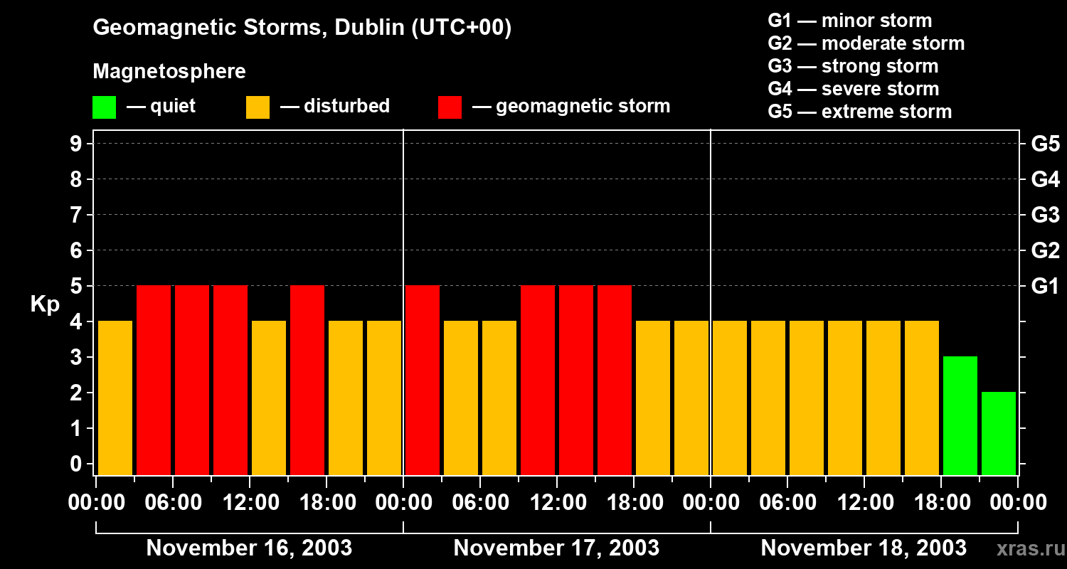Geomagnetic storms in Dublin on Nov 18, 2003