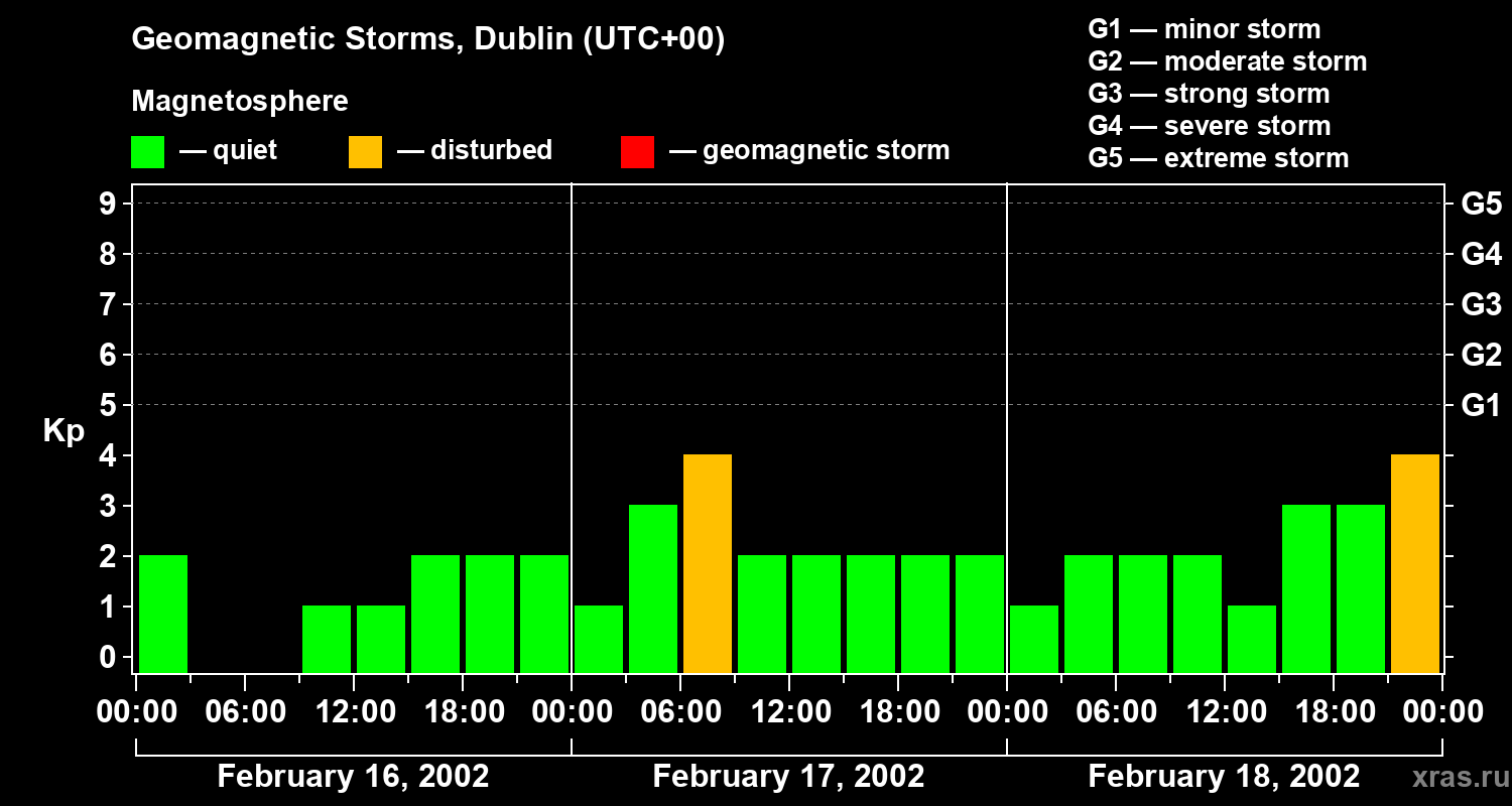Geomagnetic storms in Dublin on Feb 18, 2002