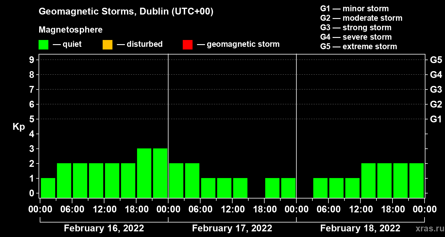 Geomagnetic storms in Dublin on Feb 18, 2022