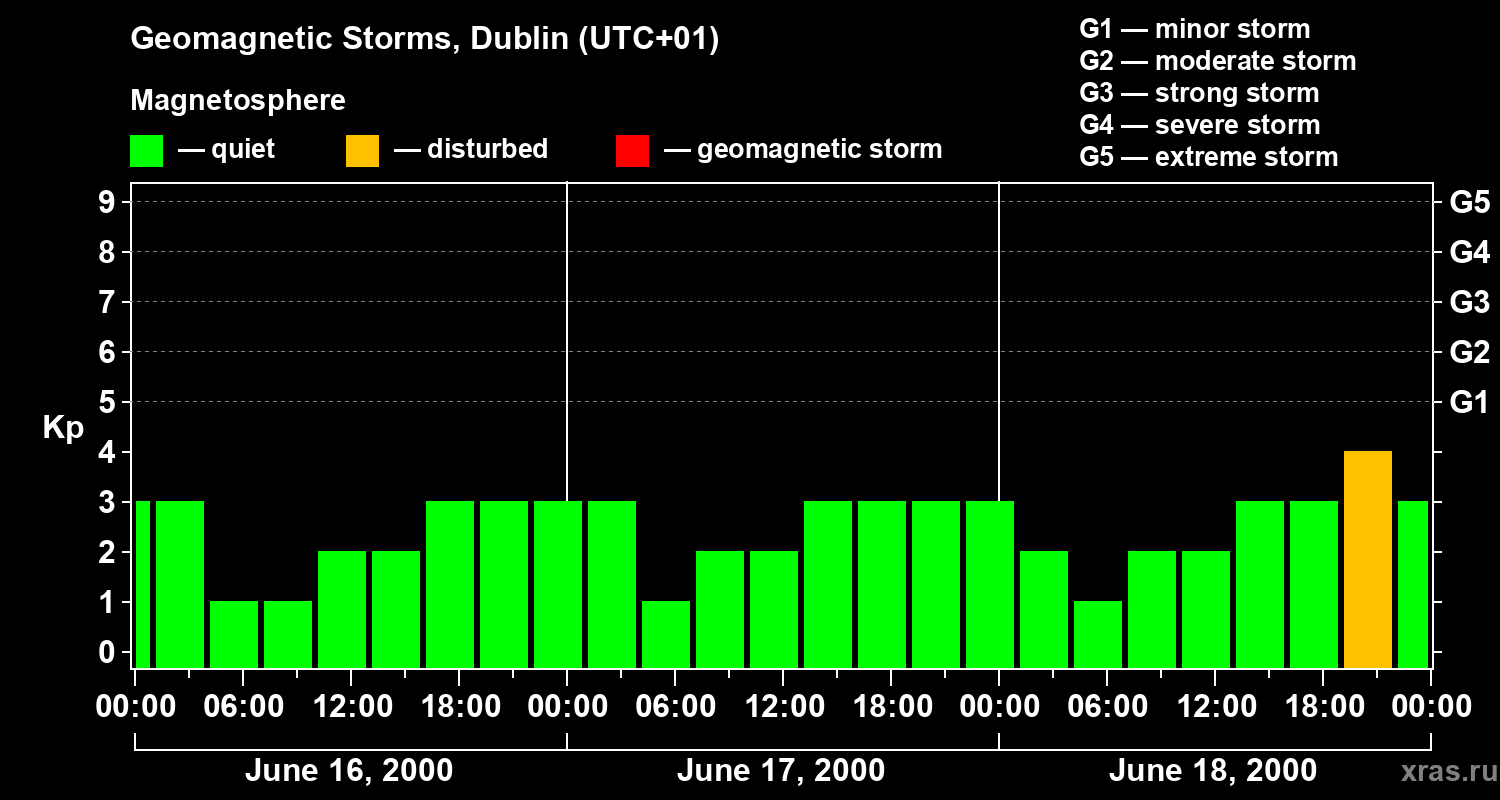 Geomagnetic storms in Dublin on Jun 18, 2000
