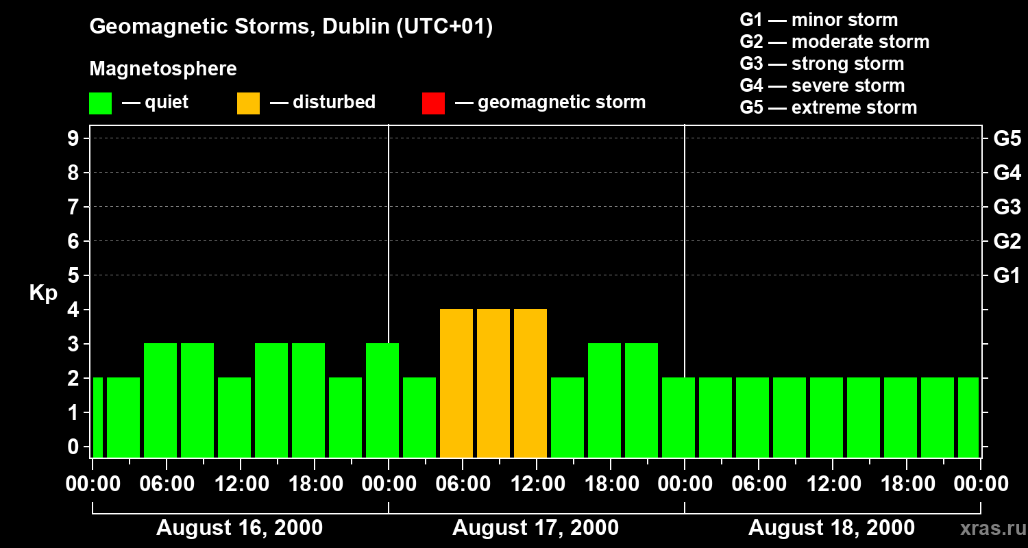 Geomagnetic storms in Dublin on Aug 18, 2000