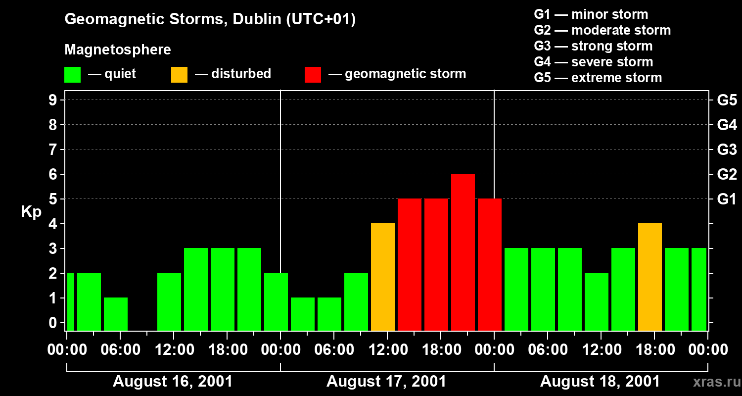 Geomagnetic storms in Dublin on Aug 18, 2001