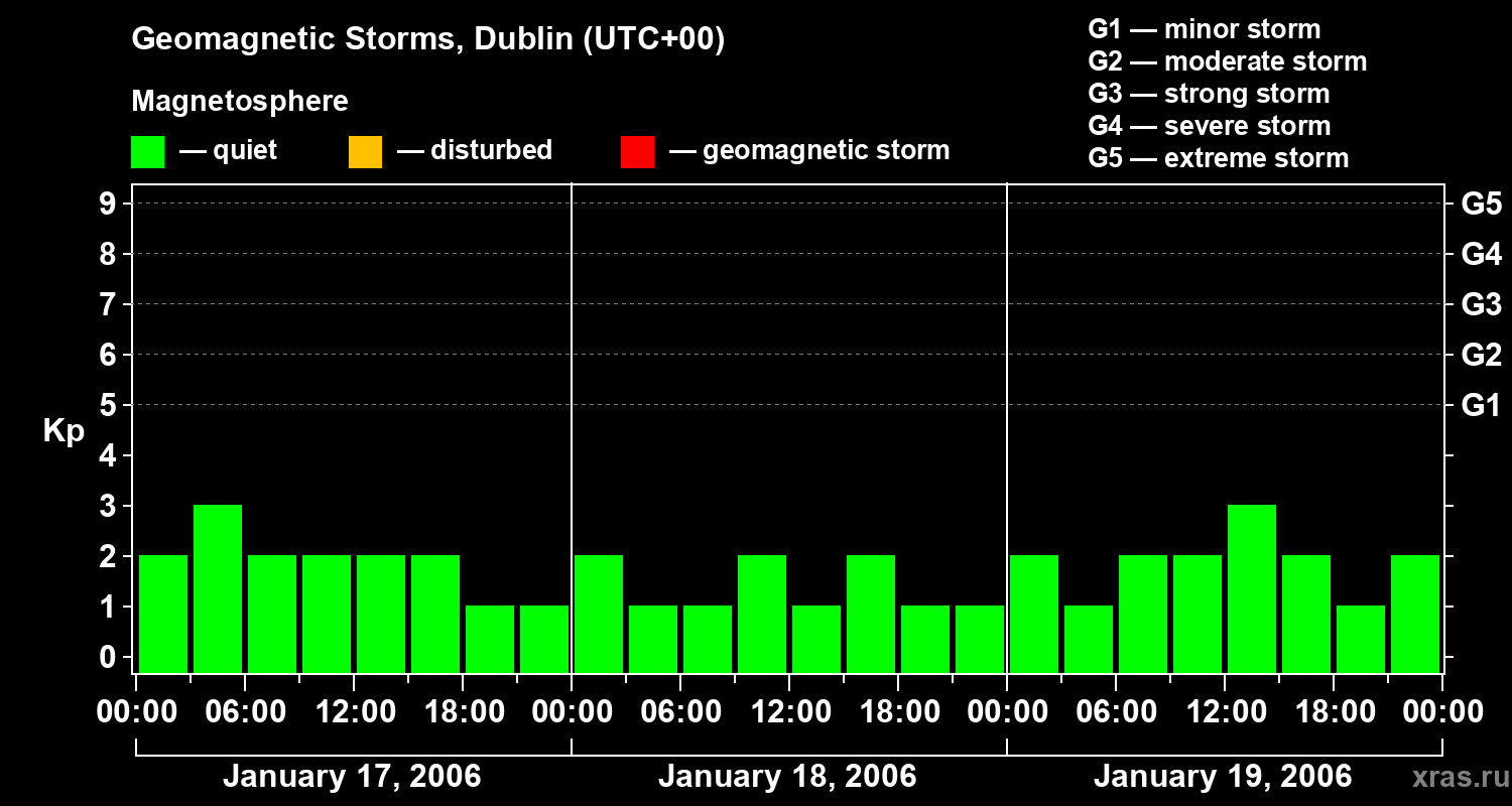 Geomagnetic storms in Dublin on Jan 19, 2006