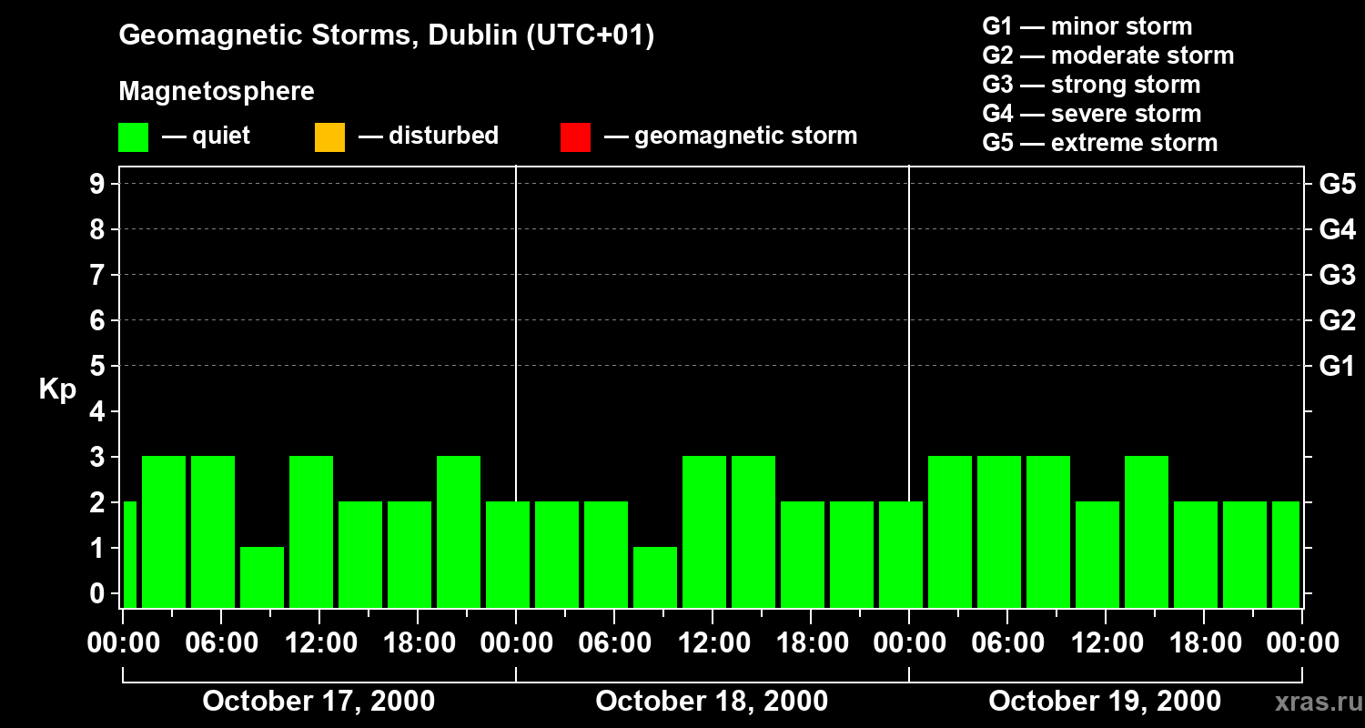 Geomagnetic storms in Dublin on Oct 19, 2000