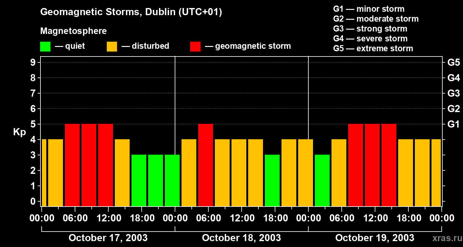 Geomagnetic storms in Dublin on Oct 19, 2003