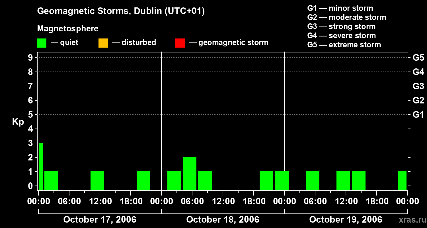 Geomagnetic storms in Dublin on Oct 19, 2006
