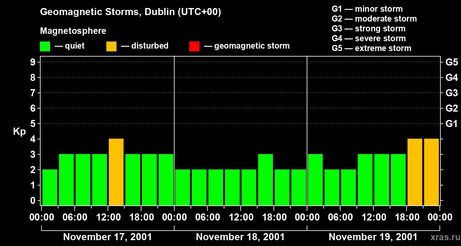 Geomagnetic storms in Dublin on Nov 19, 2001
