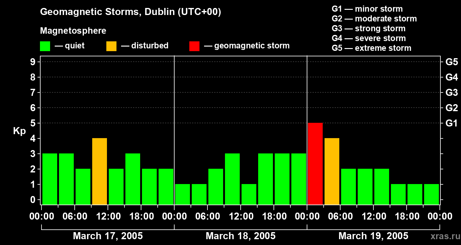 Geomagnetic storms in Dublin on Mar 19, 2005