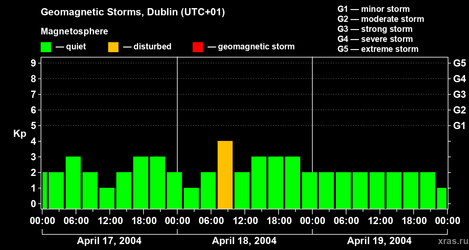 Geomagnetic storms in Dublin on Apr 19, 2004