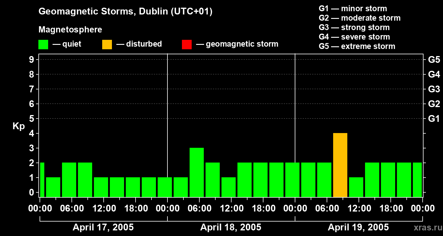 Geomagnetic storms in Dublin on Apr 19, 2005