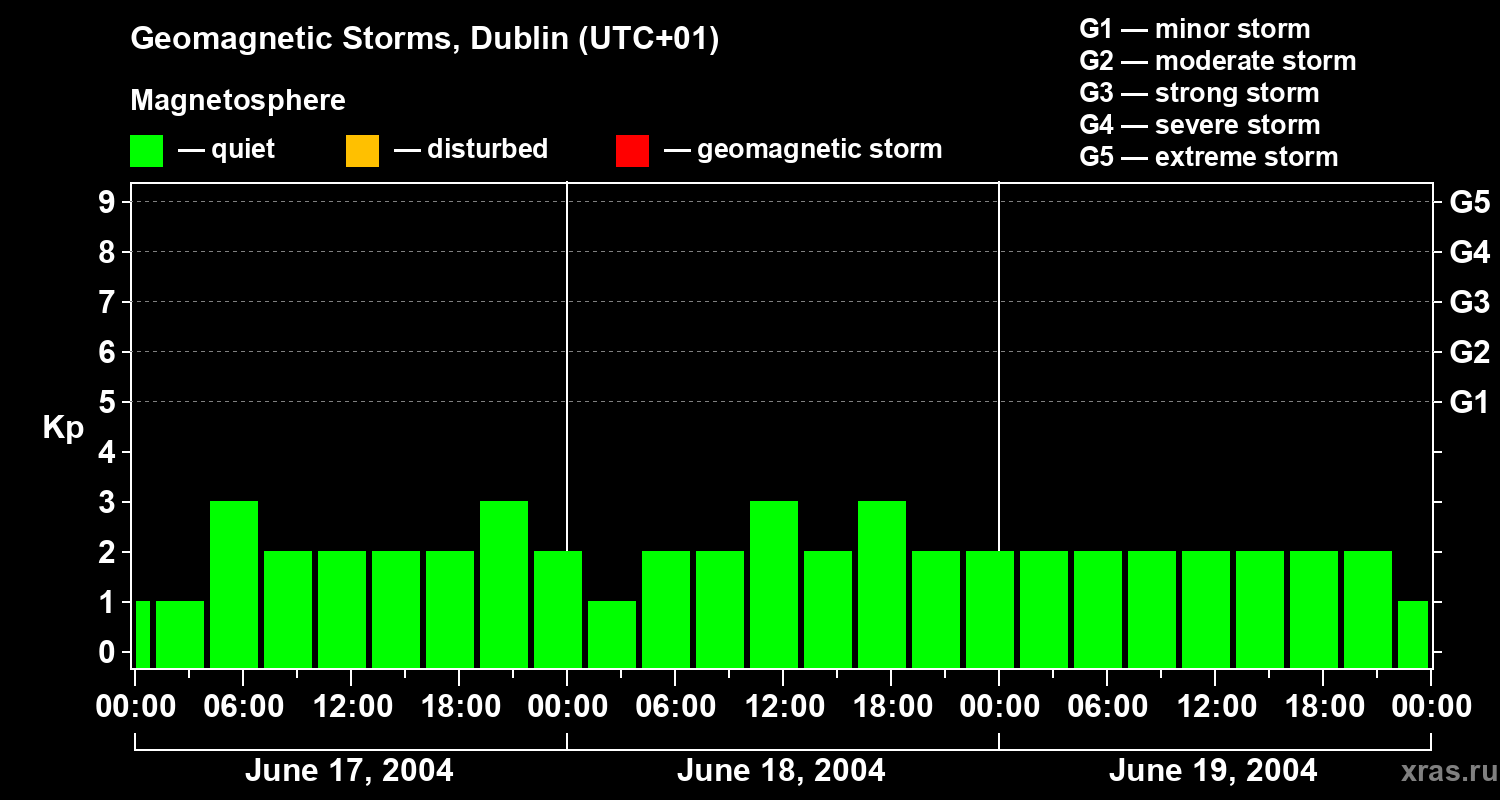 Geomagnetic storms in Dublin on Jun 19, 2004