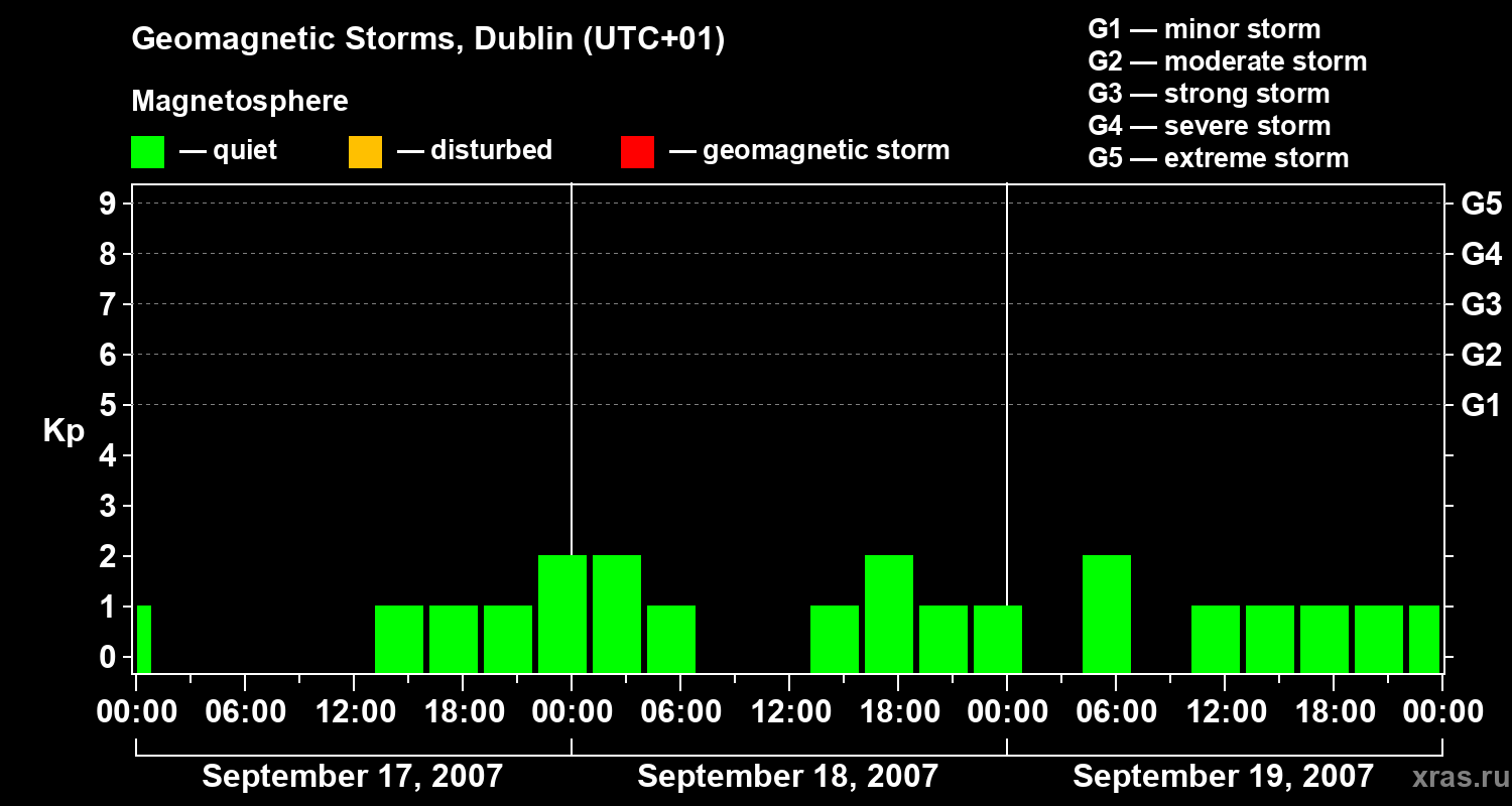 Geomagnetic storms in Dublin on Sep 19, 2007