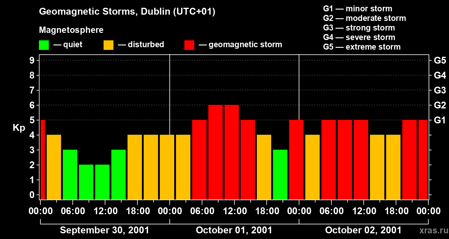 Geomagnetic storms in Dublin on Oct 02, 2001