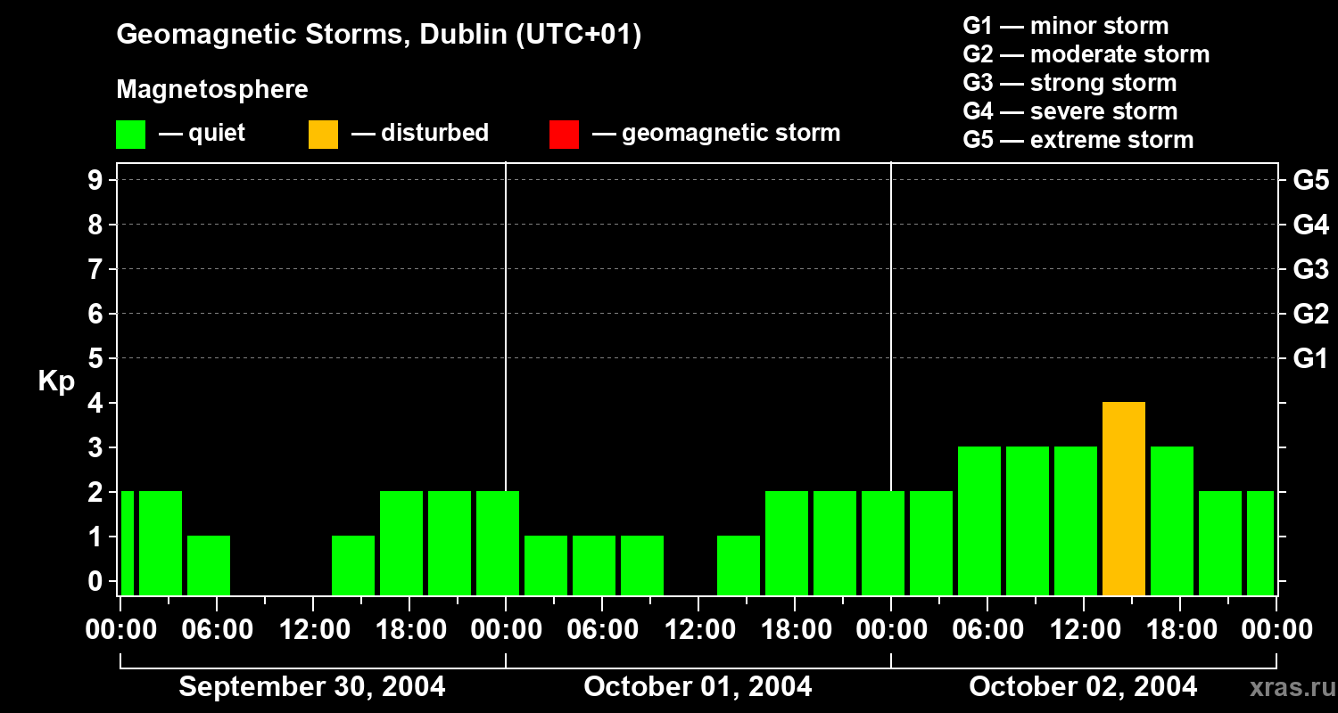Geomagnetic storms in Dublin on Oct 02, 2004