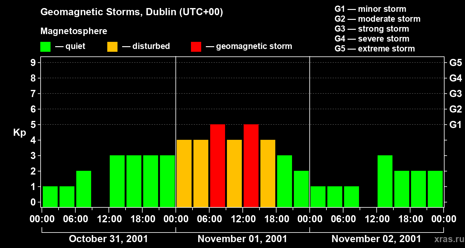 Geomagnetic storms in Dublin on Nov 02, 2001