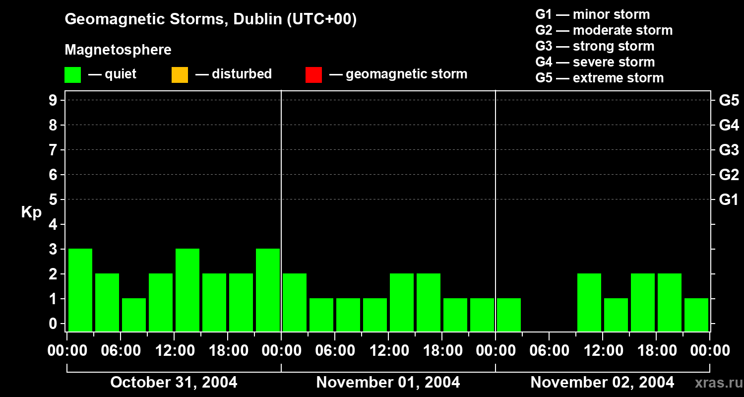 Geomagnetic storms in Dublin on Nov 02, 2004
