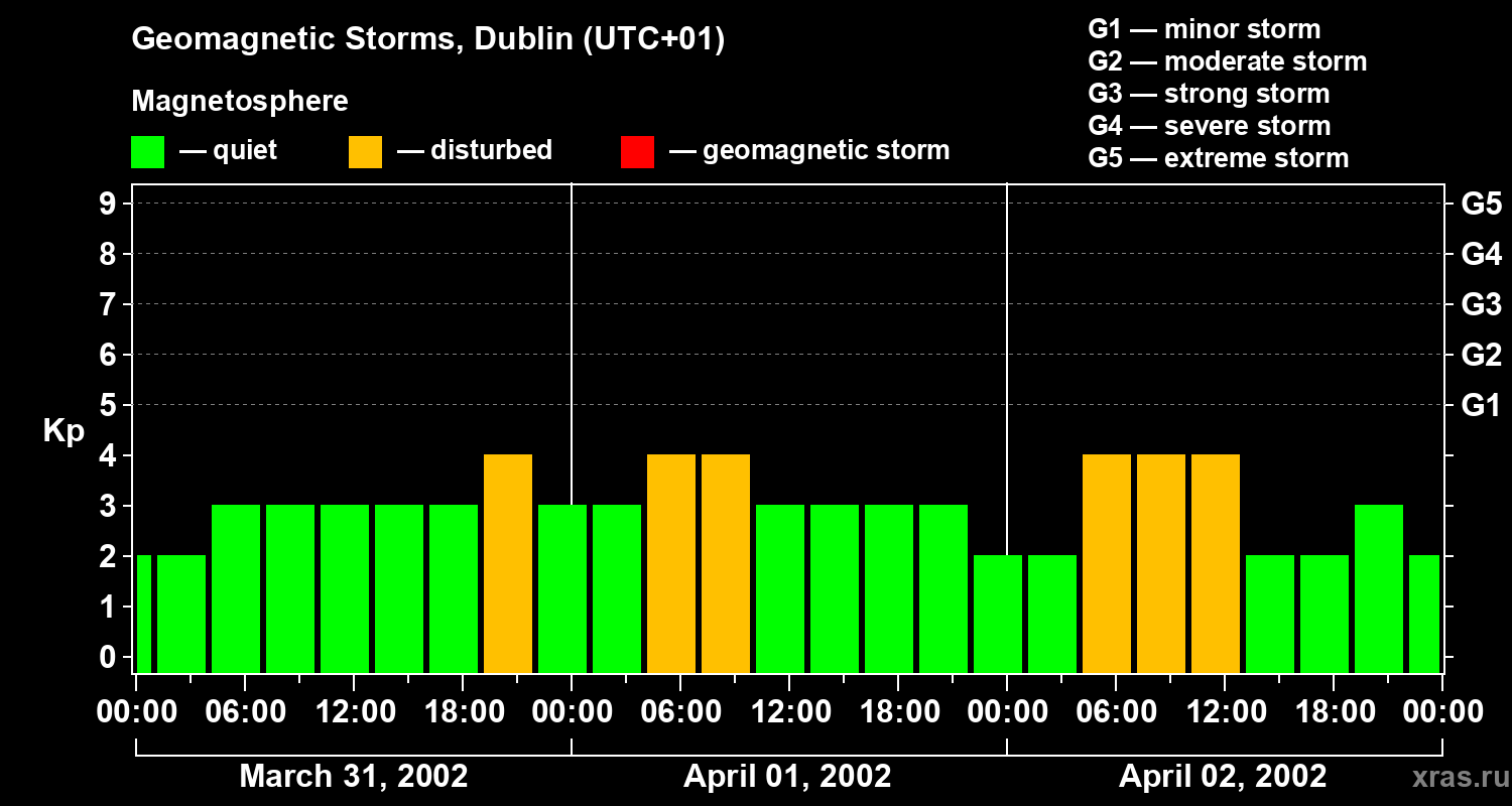 Geomagnetic storms in Dublin on Apr 02, 2002