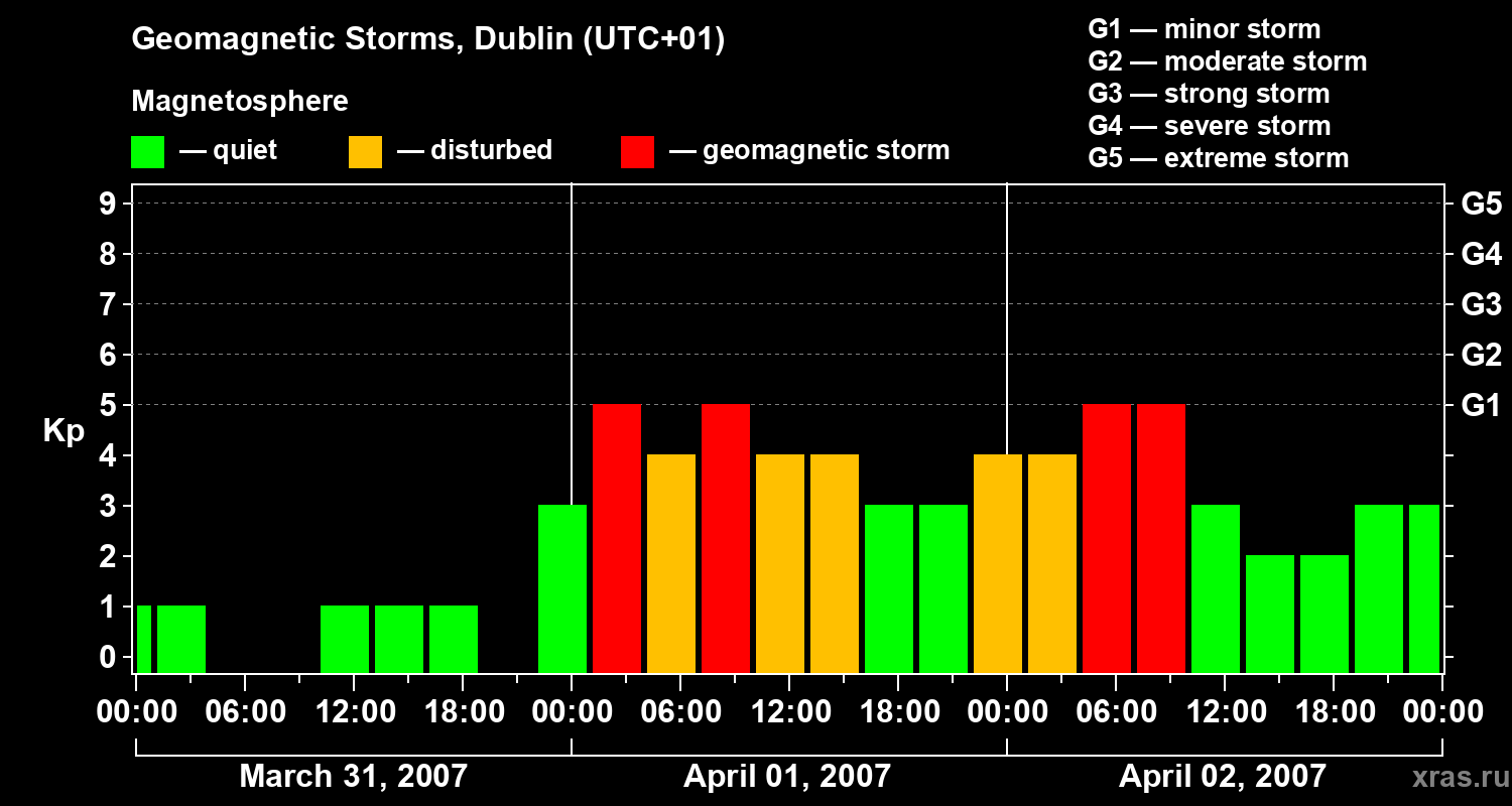 Geomagnetic storms in Dublin on Apr 02, 2007