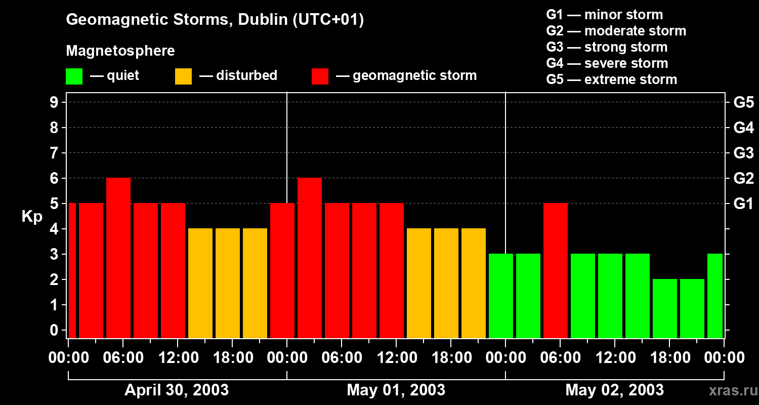 Geomagnetic storms in Dublin on May 02, 2003