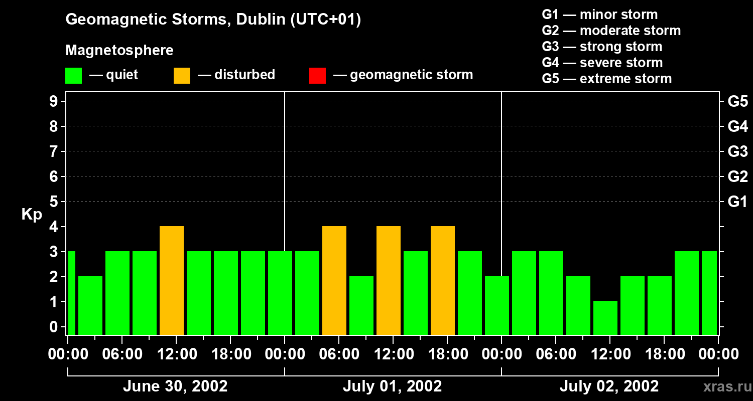 Geomagnetic storms in Dublin on Jul 02, 2002