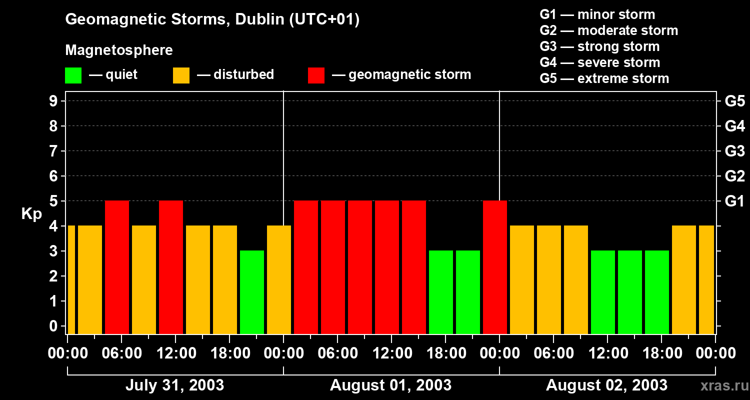 Geomagnetic storms in Dublin on Aug 02, 2003