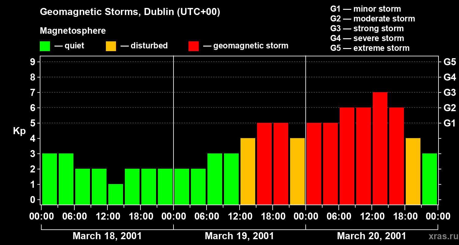 Geomagnetic storms in Dublin on Mar 20, 2001
