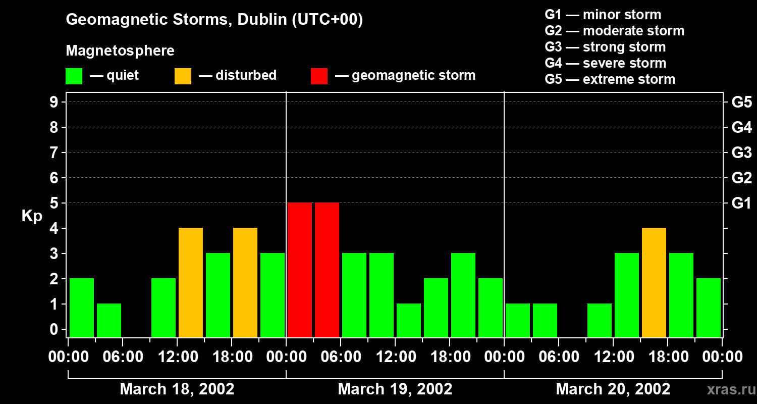 Geomagnetic storms in Dublin on Mar 20, 2002