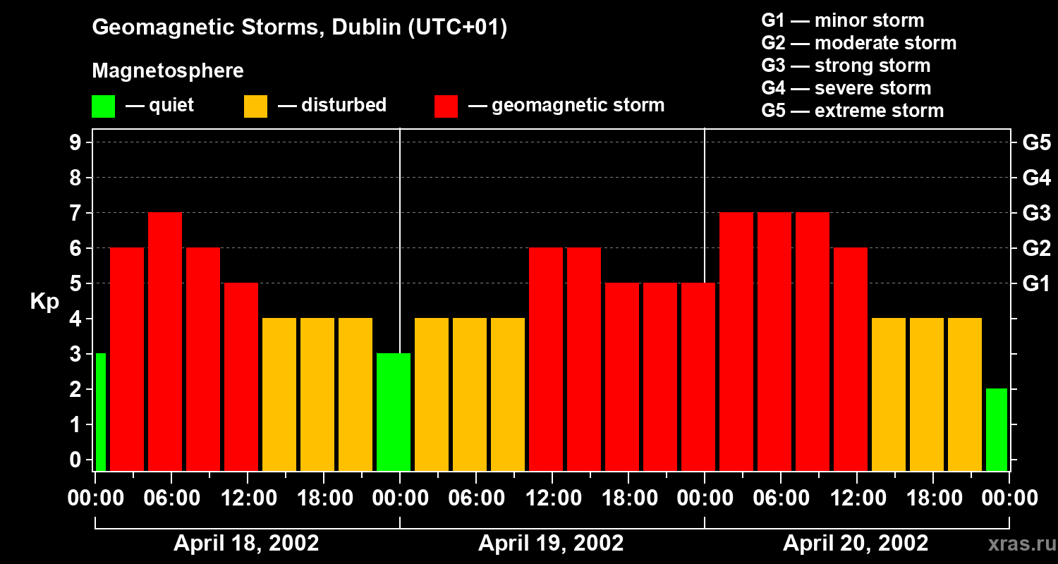 Geomagnetic storms in Dublin on Apr 20, 2002