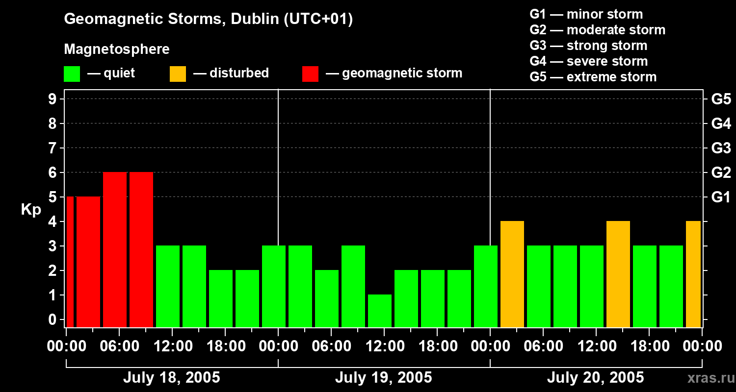 Geomagnetic storms in Dublin on Jul 20, 2005