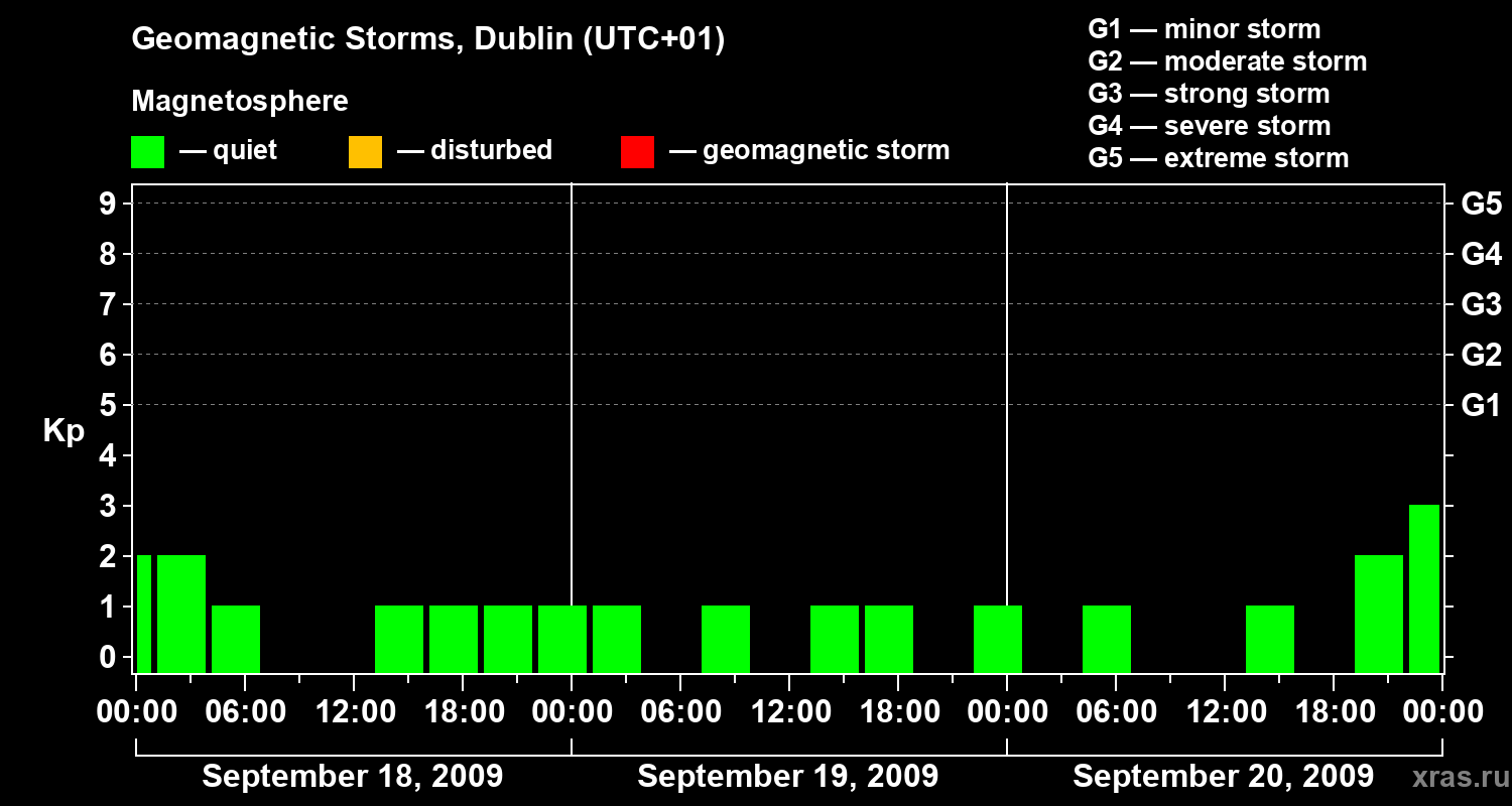 Geomagnetic storms in Dublin on Sep 20, 2009