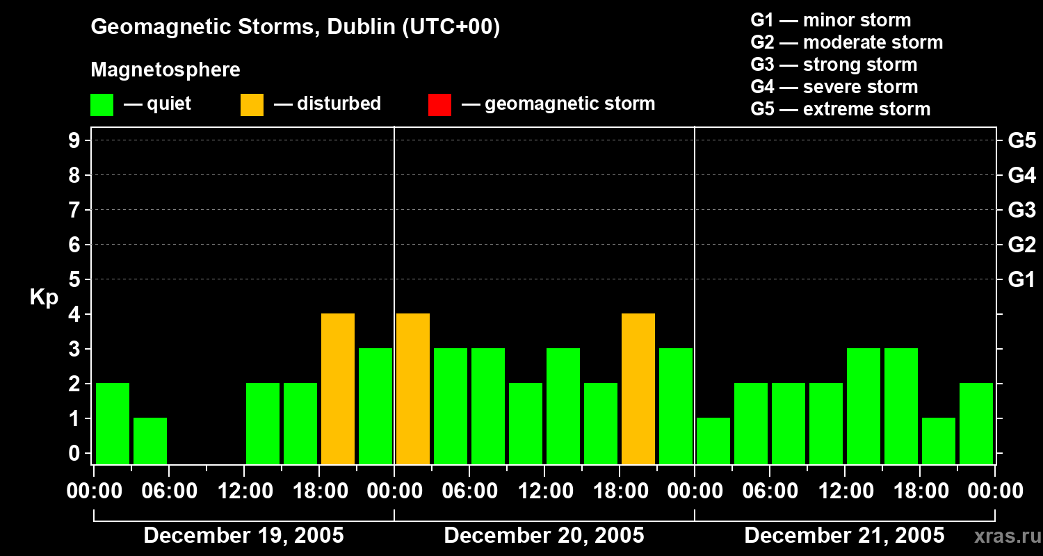 Geomagnetic storms in Dublin on Dec 21, 2005